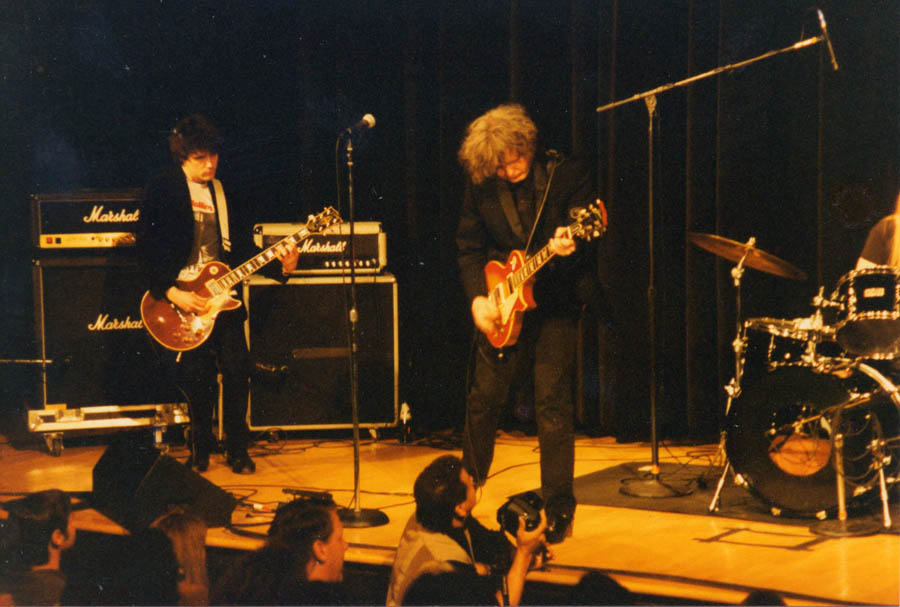 Craig Bell, Jimmy Zero, Howard Kramer, RnRHoF stage, Cleveland, OH, 1997. Photo: Claudia Bell
