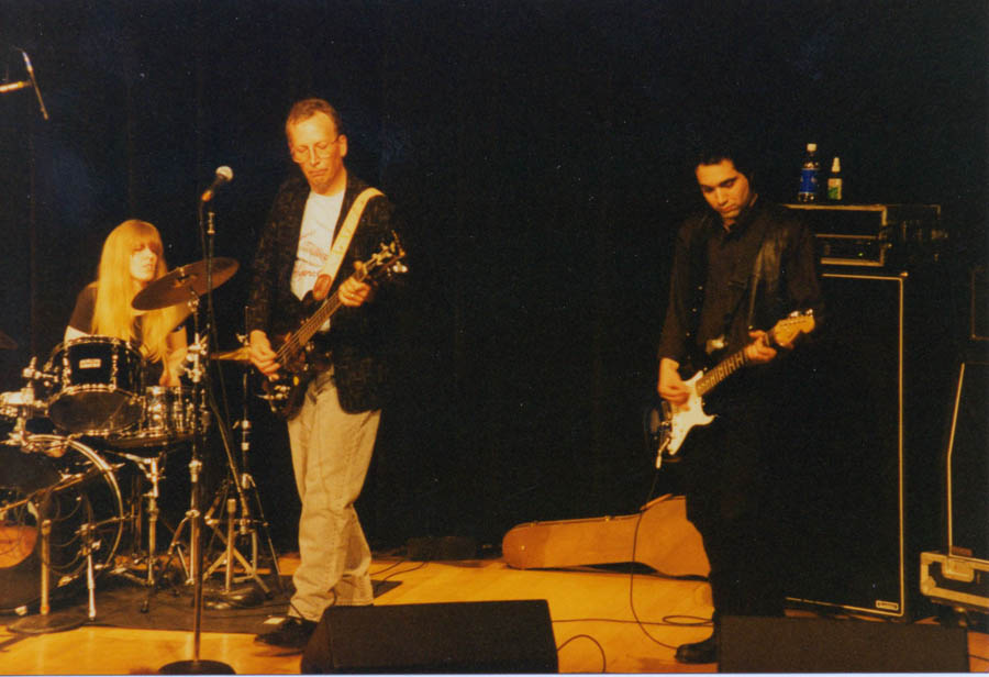 Jimmy Zero, Barb Eckles, Craig Bell, RnRHoF stage, Cleveland, OH, 1997. Photo: Claudia Bell