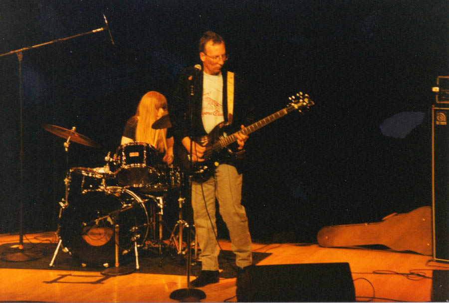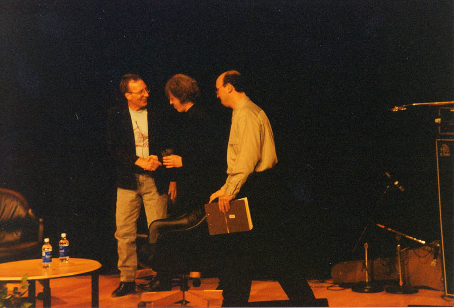 Craig Bell, Barb Eckles, Claudia Bell, RnRHoF stage, Cleveland, OH, 1997. Photo: Trisha Honaker